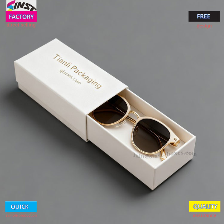 Como estuche para gafas de marca, el texto estampado en caliente en la tapa y el cuerpo del estuche se siente texturizado, lo que lo distingue de otros estuches para guardar anteojos comunes de un vistazo. La versatilidad de la caja de regalo para anteojos es más prominente: es una caja de almacenamiento para anteojos normal para uso diario, con cajones cuidadosamente dispuestos; Al dar obsequios a clientes o amigos, el empaque dorado y blanco de estilo empresarial se transforma instantáneamente en un elegante estuche para gafas de regalo; Si desea ser más exclusivo, también puede encontrar una fábrica para personalizar y agregar el logotipo de la marca o un mensaje de bendición al cuerpo de la caja, actualizándolo hasta convertirlo en un estuche de gafas personalizado único: no solo contiene gafas, sino que también presta atención al destinatario.