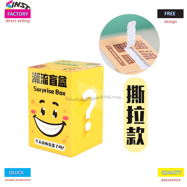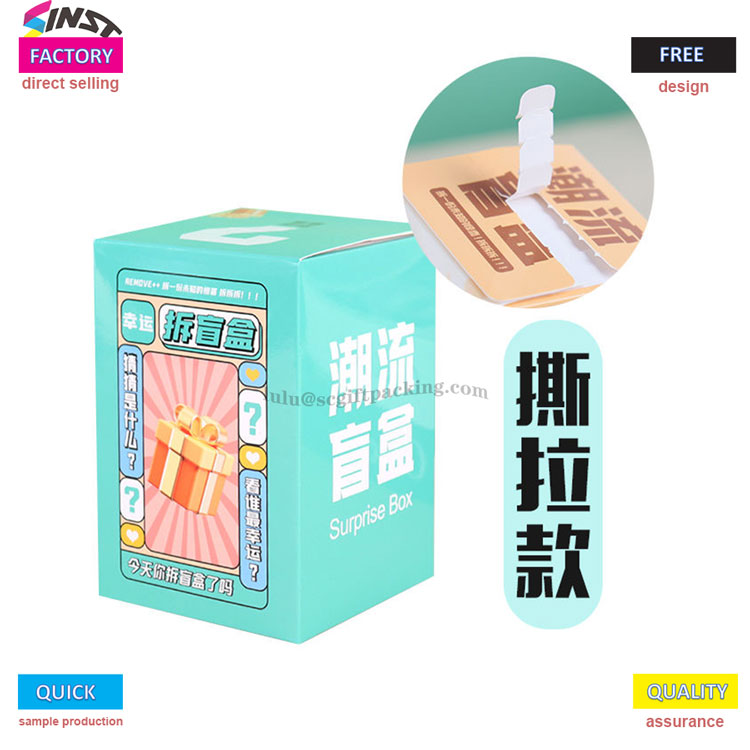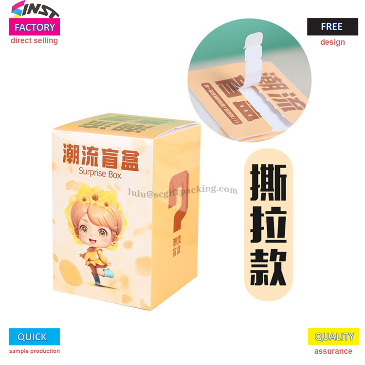 En el mundo de los coleccionables en constante evolución, una nueva tendencia ha barrido toda la industria del juguete. A diferencia del complejo empaque de cajas ciegas tradicionales,esta caja de la tarjetaLa serie adopta un diseño conveniente de "lágrima y abierto". La caja exterior está impresa con una imagen de dibujos animados Q-versión, y el lindo objeto oculto por dentro se puede revelar en el momento del desgarro, haciendo que el proceso de desempaquetado esté lleno de ceremonia relajada, amada por los jóvenes de Dios. Estas encantadoras sorpresas de juguetes combinan la emoción del desempeño con la emoción de descubrir los juguetes en el interior, haciendo que la gente los ame inmensamente;